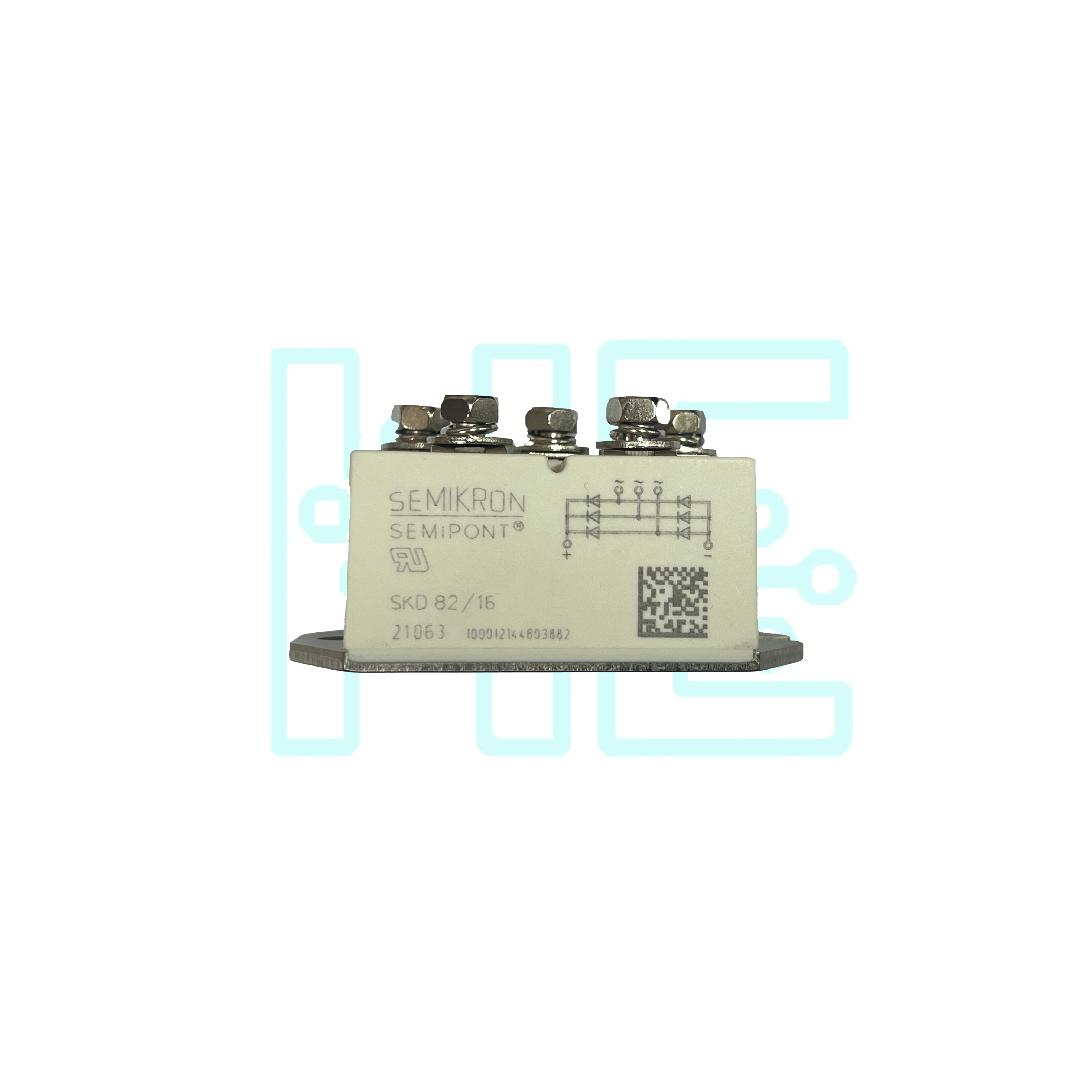قطعه SKD82/16 یک ماژول یکسوساز سهفاز از برند Semikron است که در پکیج SEMIPONT 3 طراحی شده. این ماژول دارای ولتاژ معکوس تکراری حداکثر 1600 ولت و جریان مستقیم متوسط 80 آمپر در دمای کیس 110 درجه سانتیگراد میباشد. جریان ضربهای آن تا 640 آمپر قابل تحمل است.